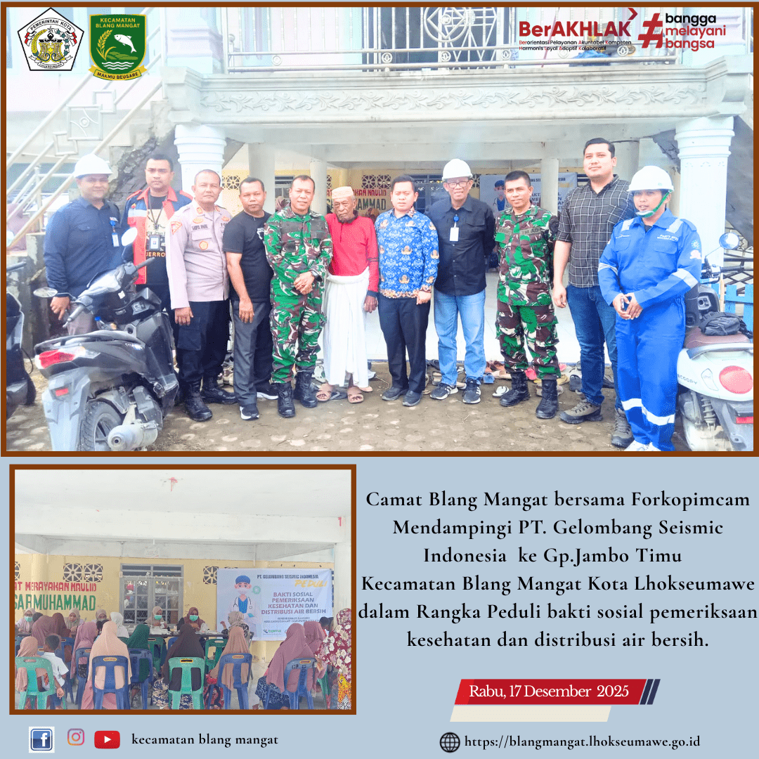Camat Blang Mangat bersama Ibu Camat turut mendampingi Bapak Wali Kota Lhokseumawe dan Ibu Wali Kota dalam kegiatan penyerahan peralatan sekolah kepada para siswa SD Dalam Kecamatan Blang Mangat. Kegiatan…